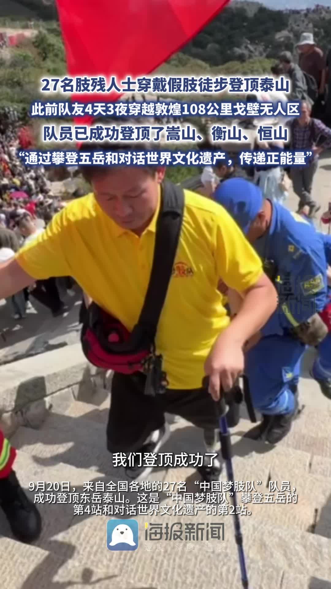 • 27名肢殘人士穿戴假肢徒步登頂泰山,曾有隊友穿越敦煌108公里戈壁無人區
